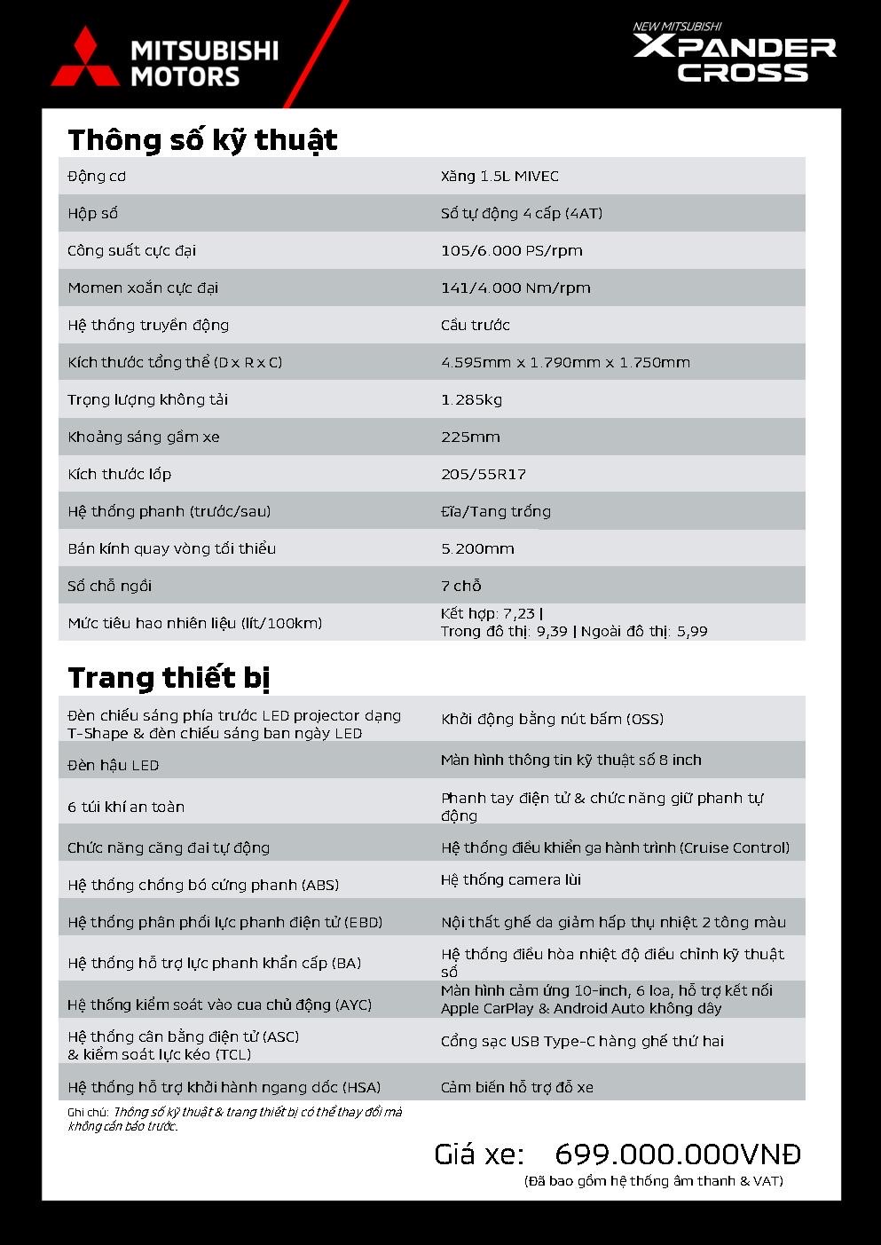 THÔNG SỐ KỸ THUẬT XPANDER CROSS